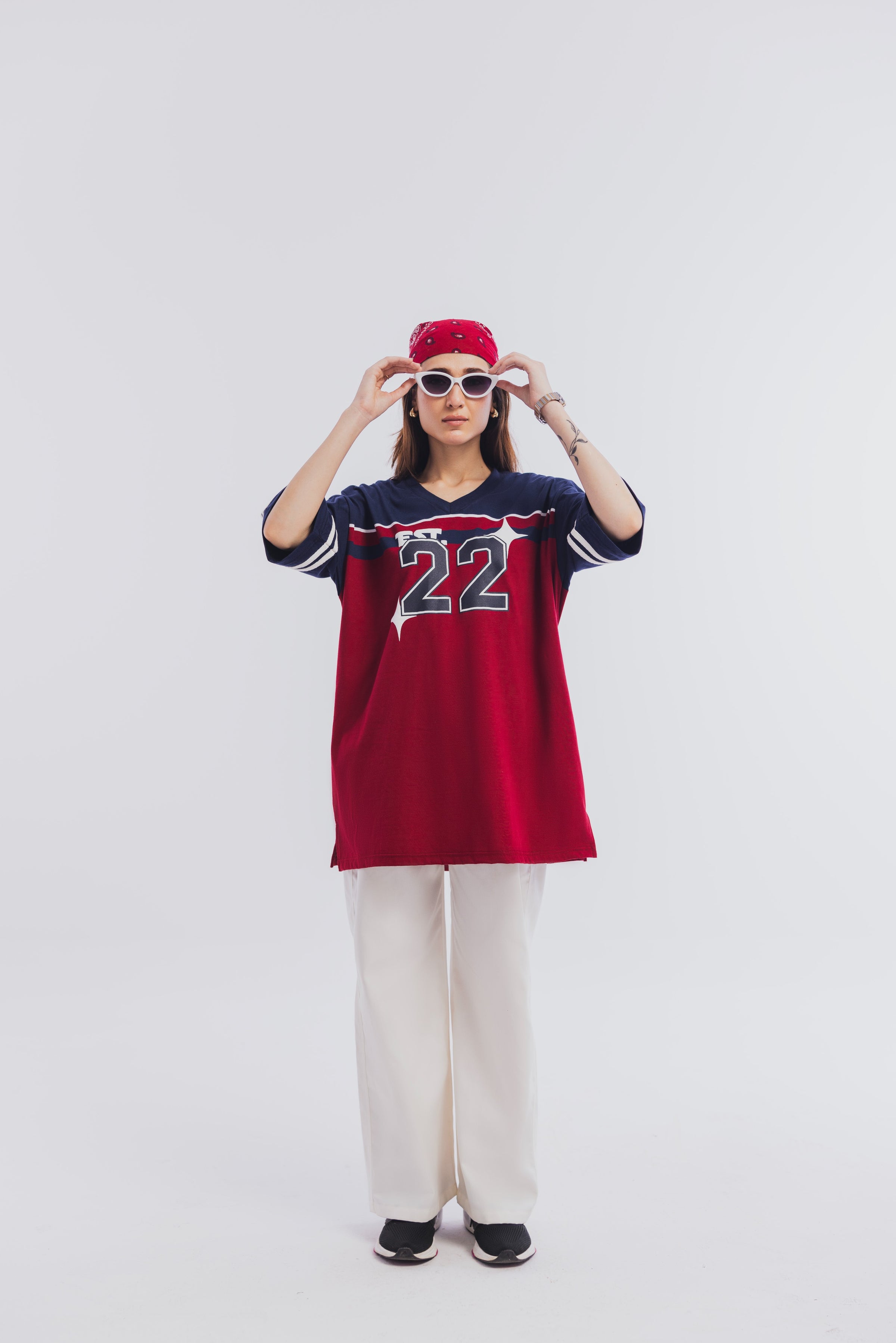 This Tee is designed using street aesthetic mood board. A multi textured print has been added along with a twill tape tailored on sleeves. You can pair it with jorts or skirts for the ultimate sporty look!