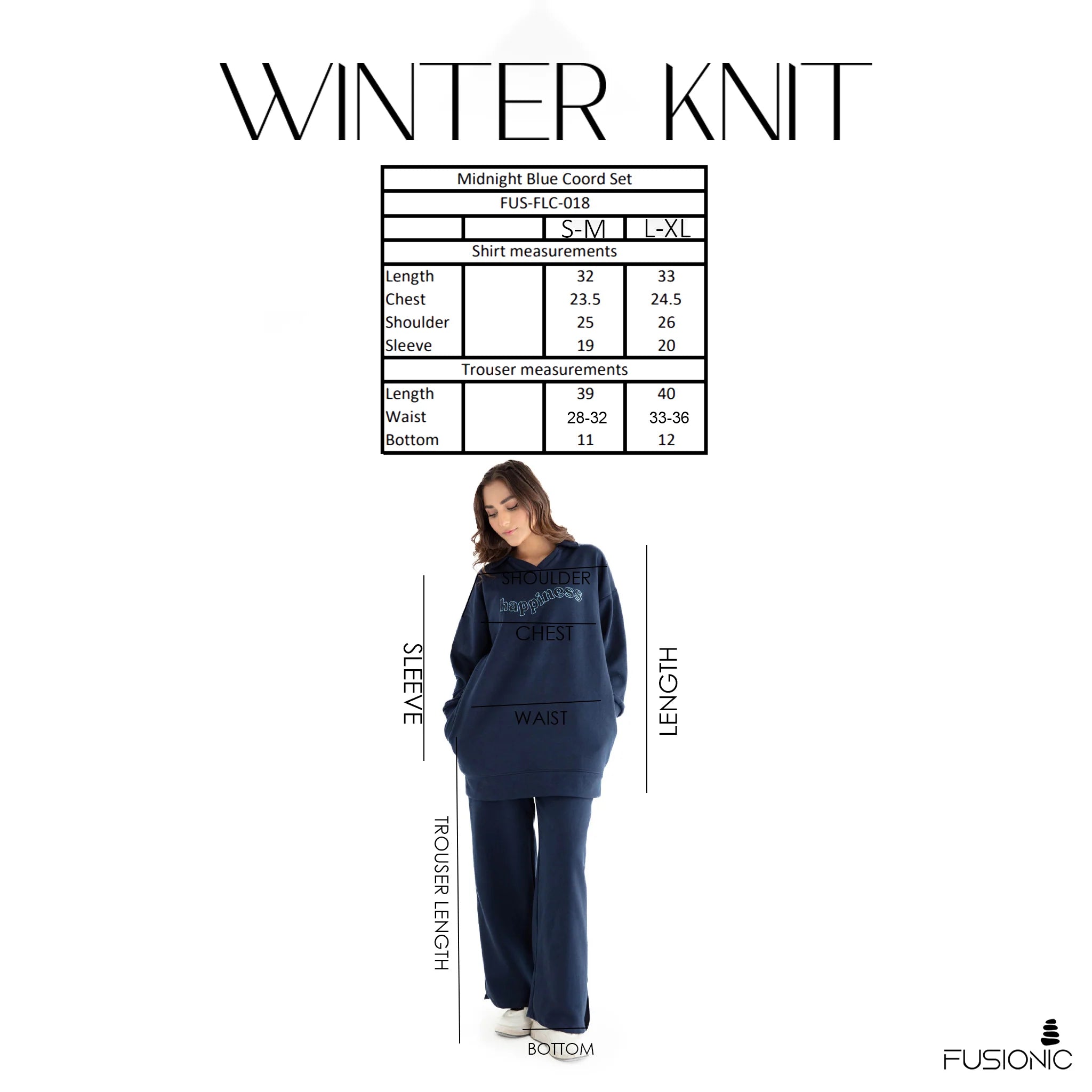 A comfortable midnight blue fleece coord set with a V Collar Top that features side seam pockets and eye-catching 2-toned tufted embroidery. The wide trousers add a stylish touch with a side slit. It's the ultimate blend of comfort and style!